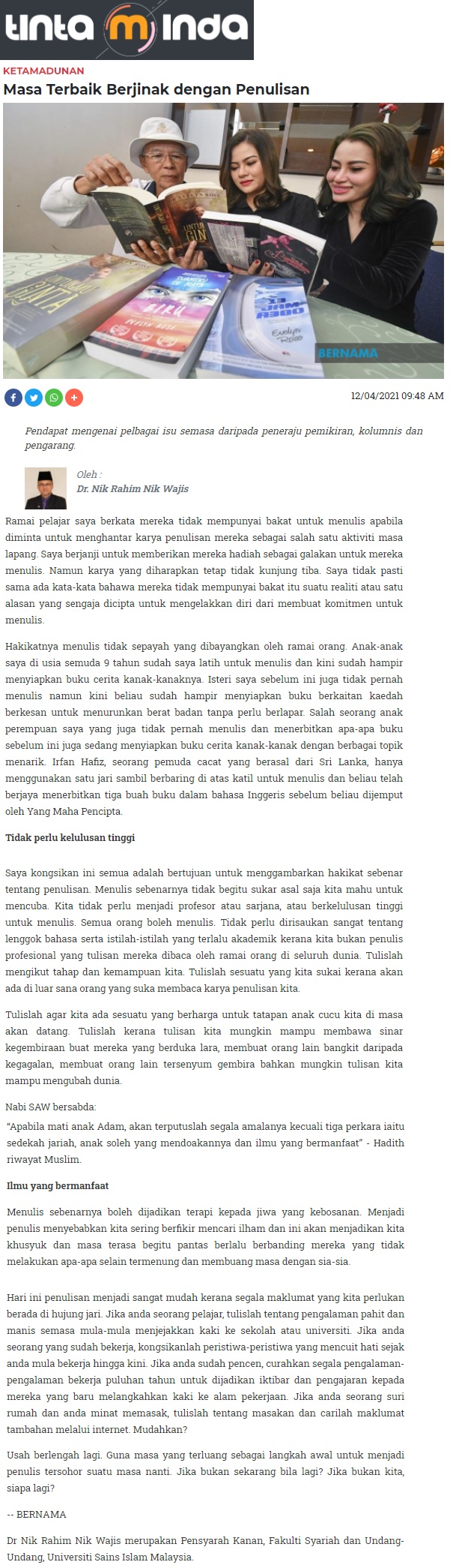 - BERNAMA (TINTA MINDA) 12 APRIL 2021 MASA TERBAIK BERJINAK DENGAN PENULISAN.jpg