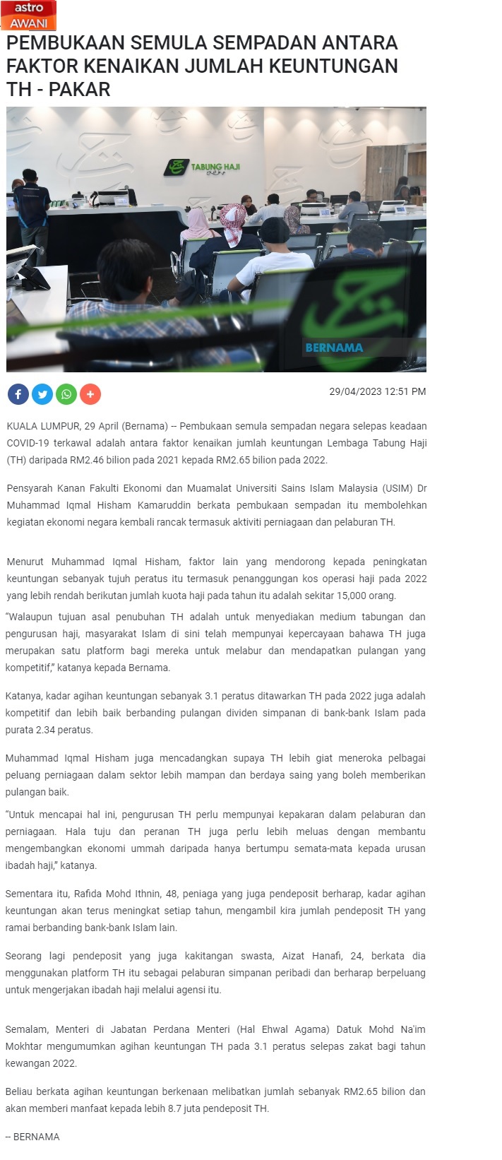 Pembukaan Semula Sempadan Antara Faktor Kenaikan Jumlah Keuntungan TH