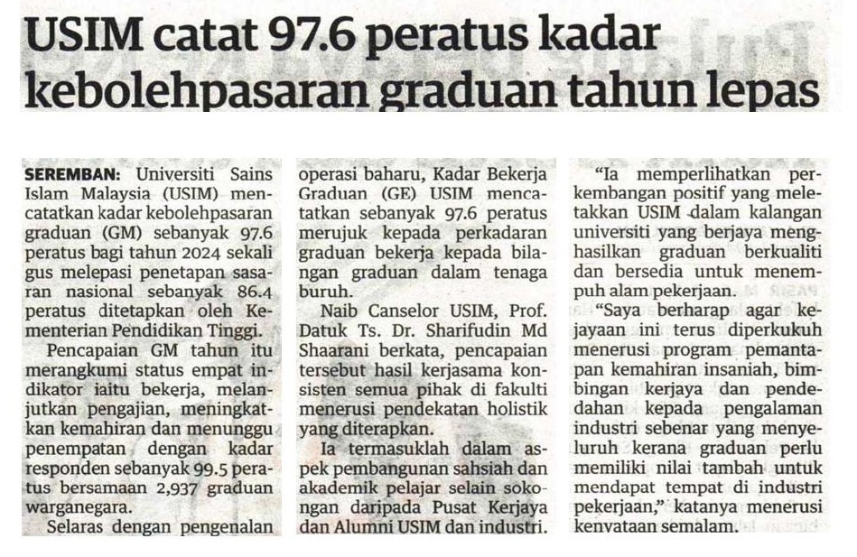 USIM catat 97.6 peratus kadar kebolehpasaran graduan tahun lepas