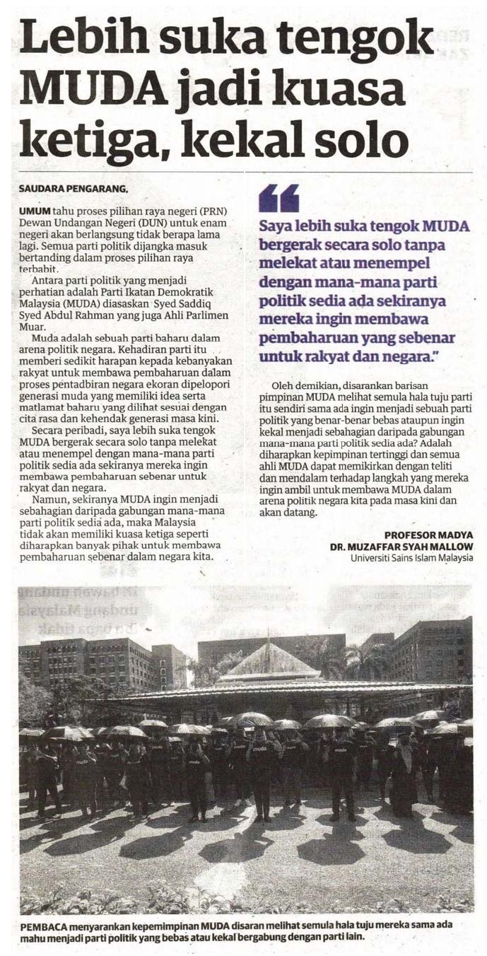 Lebih suka tengok Muda jadi kuasa ketiga, kekal solo