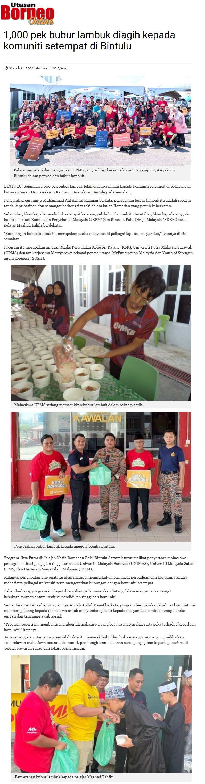 1,000 PEK BUBUR LAMBUK DIAGIH KEPADA KOMUNITI SETEMPAT DI BINTULU