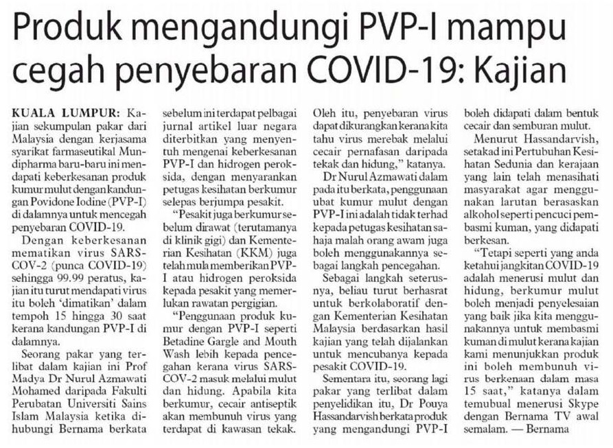 Produk Mengandungi PVP-I Mampu Cegah Covid-19