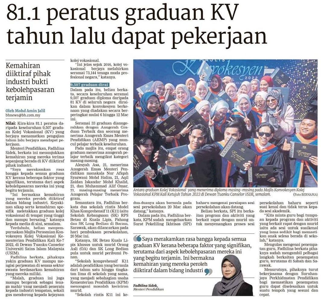 81.1 peratus graduan KV tahun lalu dapat pekerjaan
