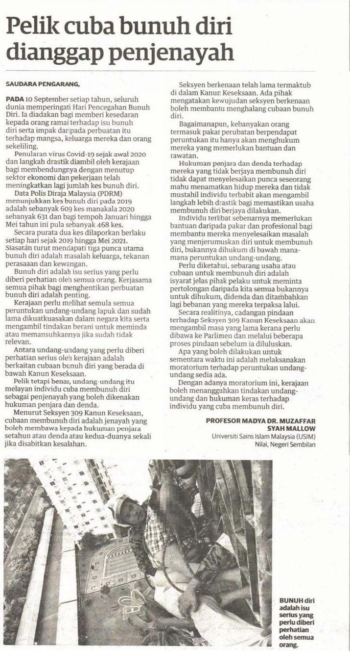 Pelik Cuba Bunuh Diri Dianggap Penjenayah