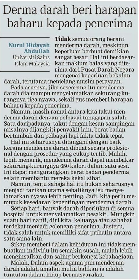 Derma darah harapan baharu kepada penerima