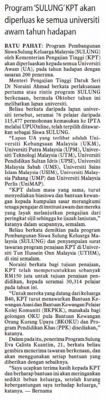 Program 'Sulung' KPT akan diperluas ke semua universiti awam tahun hadapan