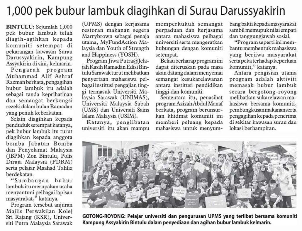 1,000 PEK BUBUR LAMBUK DIAGIHKAN DI SURAU DARUSSYAKIRIN