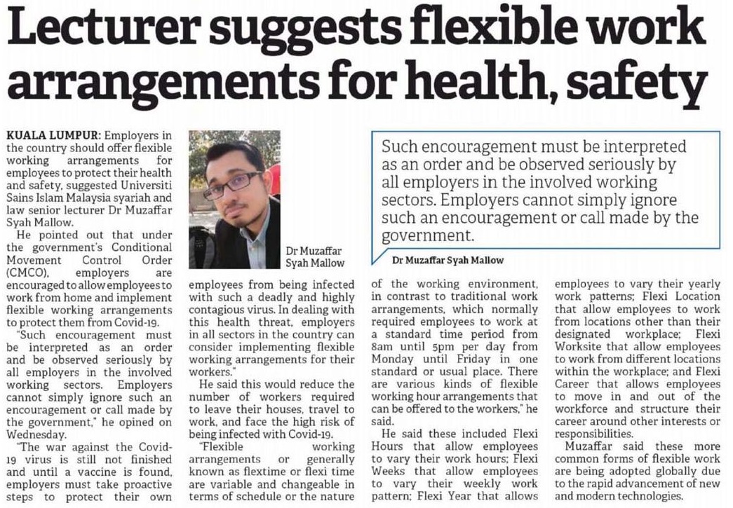 Lecturer Suggest Flexible Work Arrangement For Healthy And Safety