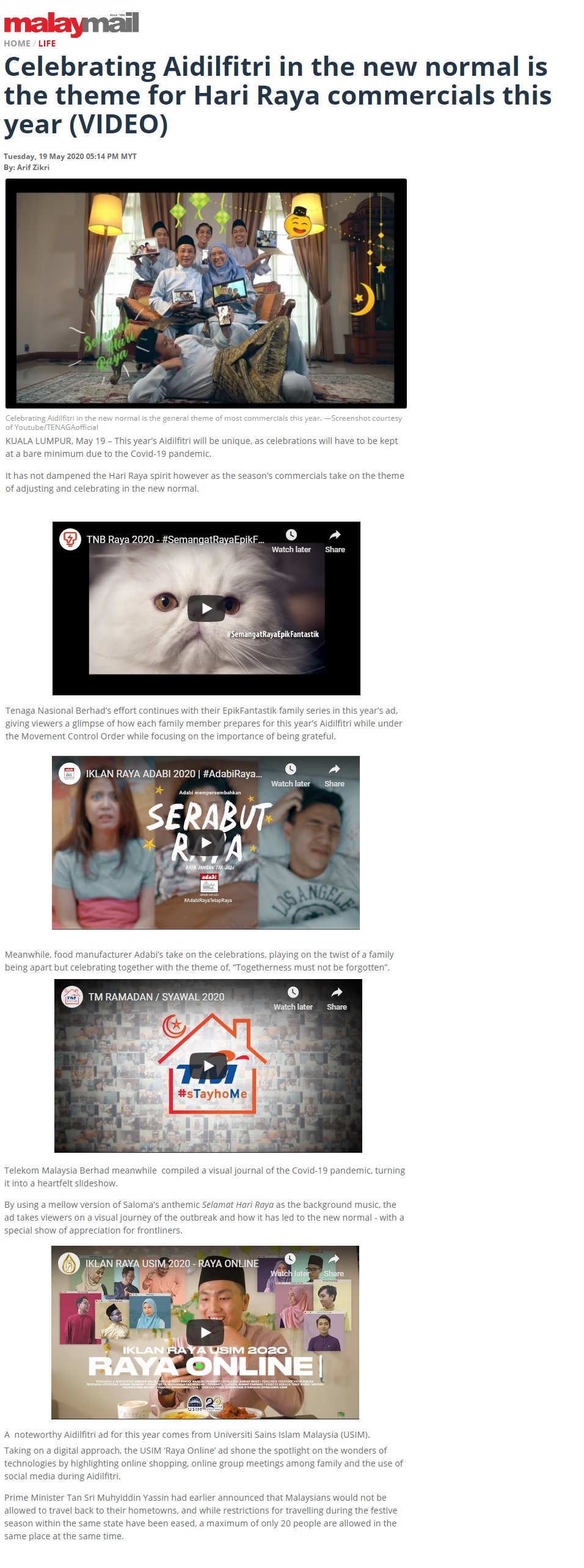Celebrating Aidilfitri In The New Normal Is The Theme For Hari Raya Commercials This Year