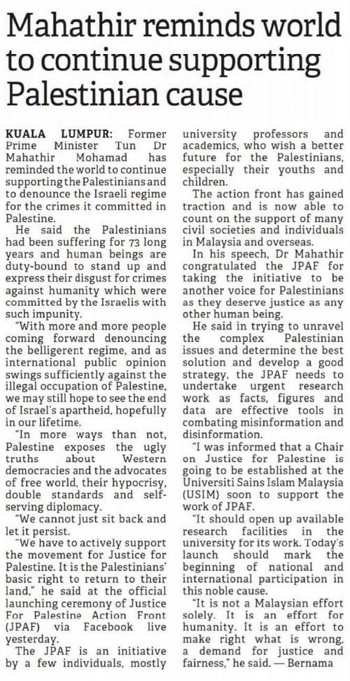 - BORNEO POST (KK) 19 JULAI 2021 MS 5 DR MAHATHIR REMINDS WORLD TO CONTINUE SUPPORTING PALESTINIAN CAUSE.jpg