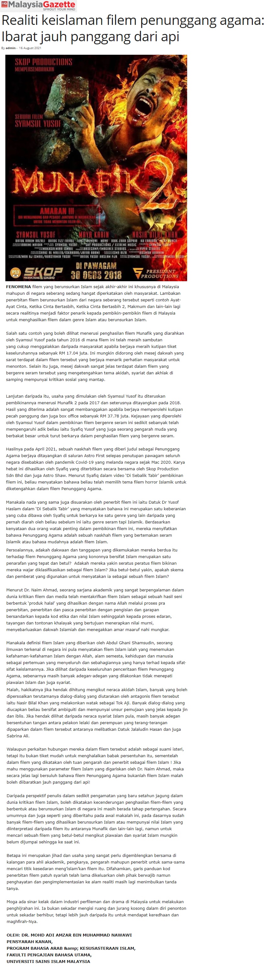 - MALAYSIA GAZETTE 16 OGOS 2021 REALITI KEISLAMAN FILEM PENUNGGANG AGAMA; IBARAT JAUH PANGGANG DARI API.jpg