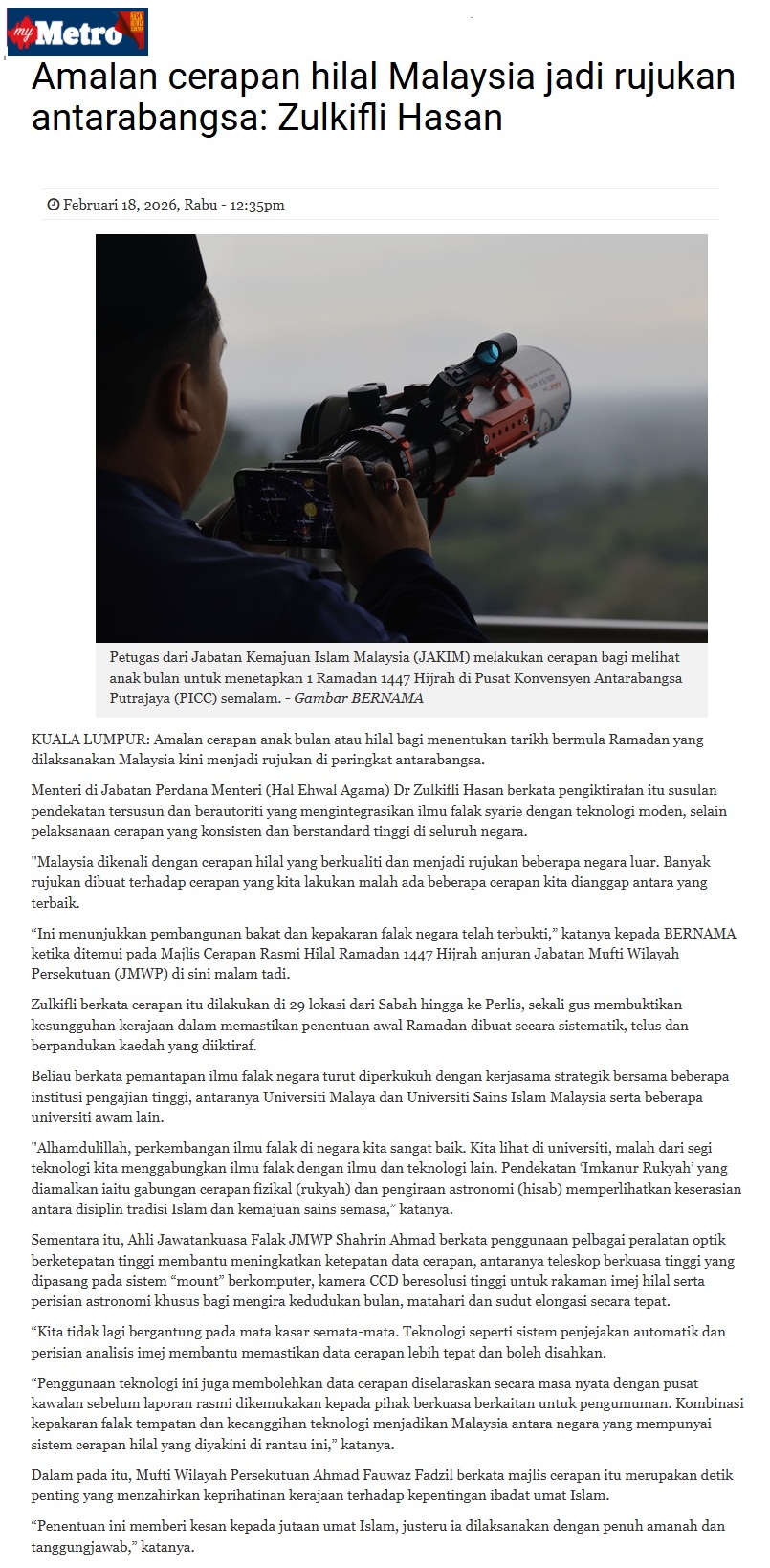 AMALAN CERAPAN HILAL MALAYSIA JADI RUJUKAN ANTARABANGSA