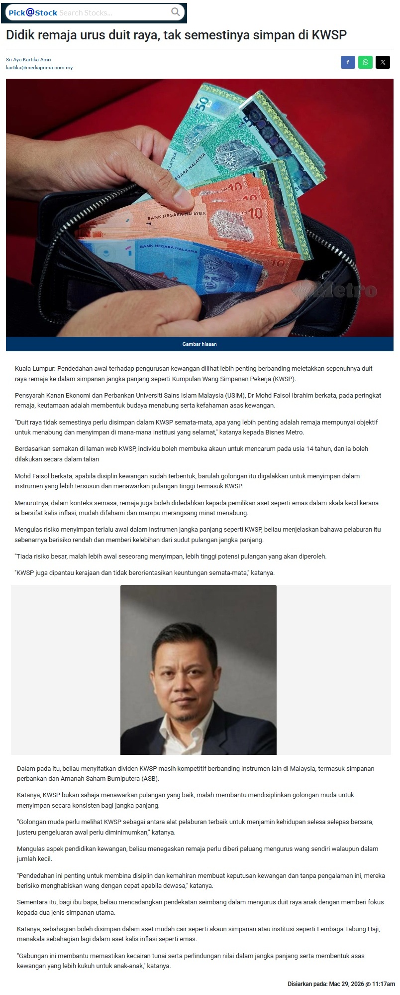 DIDIK REMAJA URUS DUIT RAYA, TAK SEMESTINYA SIMPAN DI KWSP