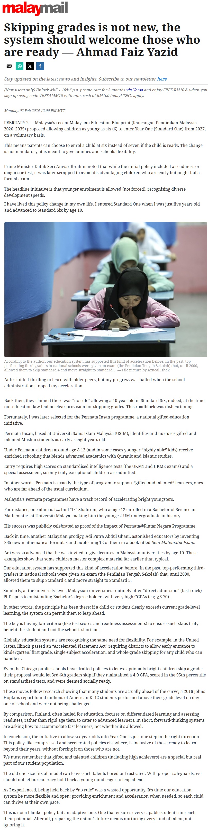 SKIPPING GRADES IS NOT NEW, THE SYSTEM SHOULD WELCOME THOSE WHO ARE READY