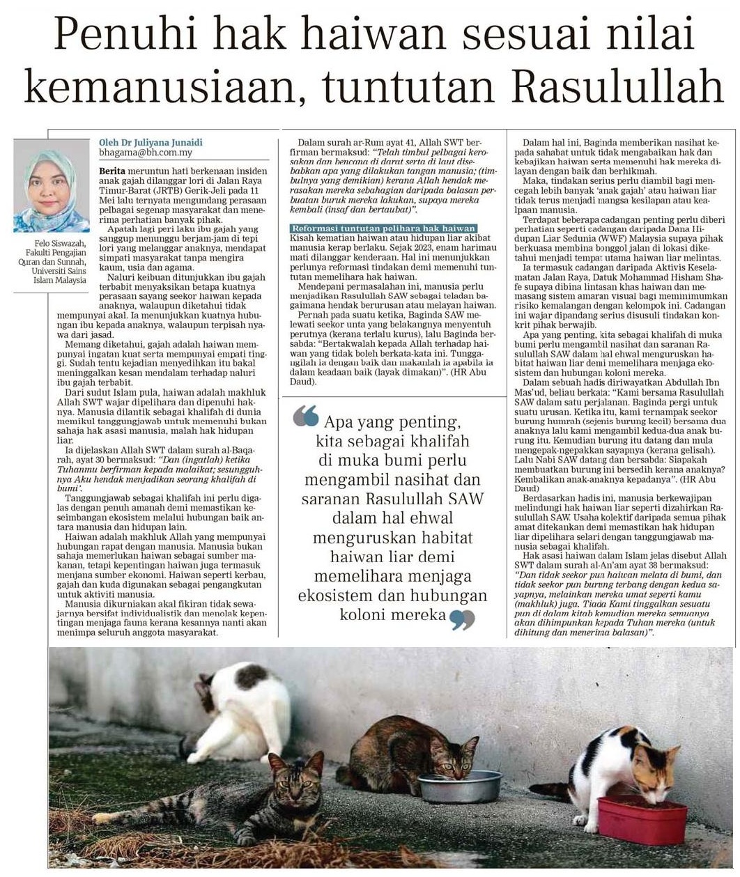 Penuhi hak haiwan sesuai nilai kemanusiaan, tuntutan Rasulullah