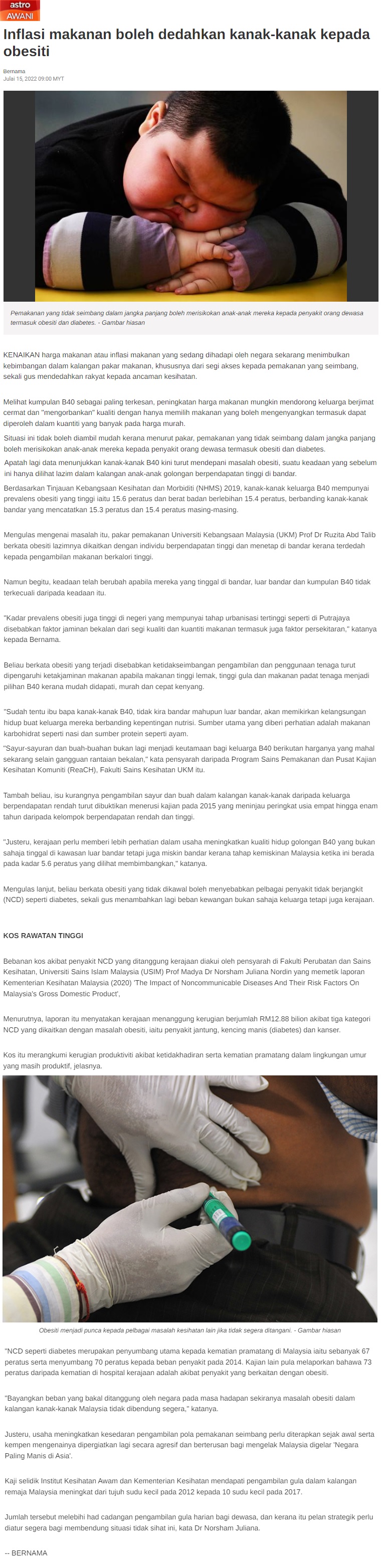 Inflasi Makanan Boleh Dedahkan Kanak-Kanak Kepada Obesiti