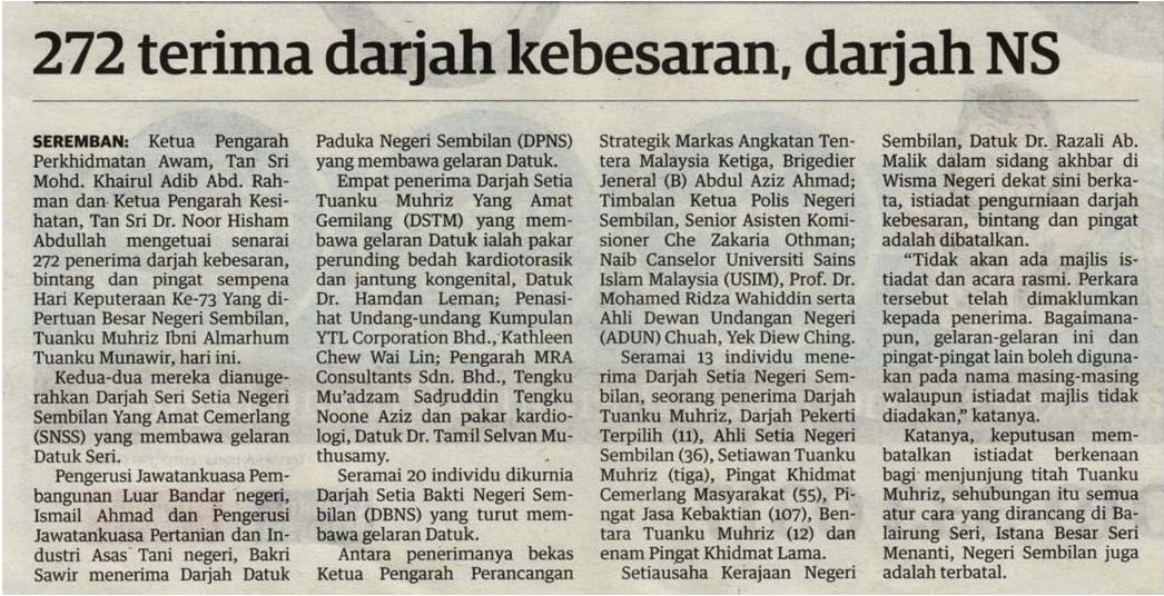 272 Terima Darjah Kebesaran, Darjah NS