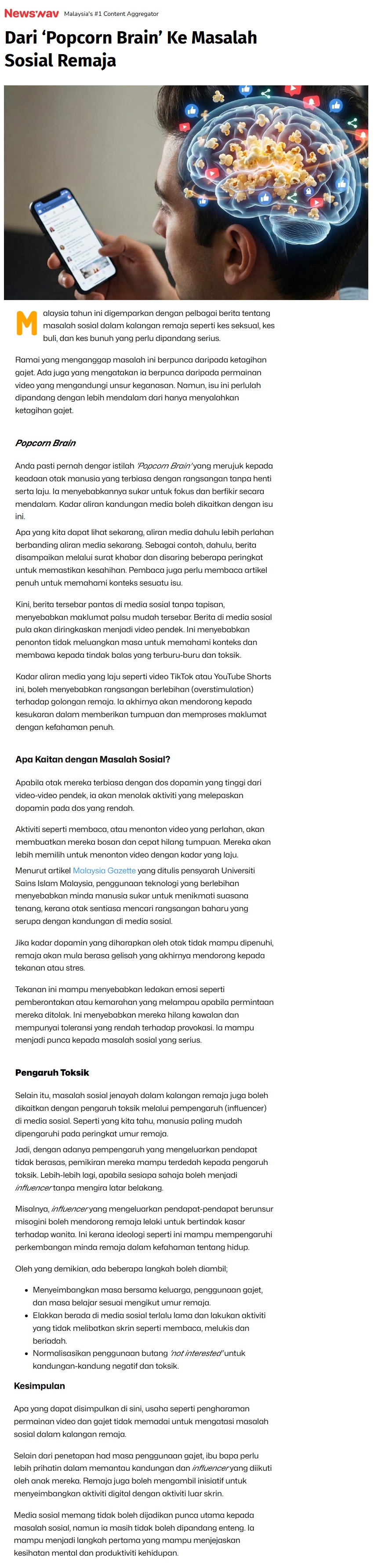 DARI POPCORN BRAIN KE MASALAH SOSIAL REMAJA