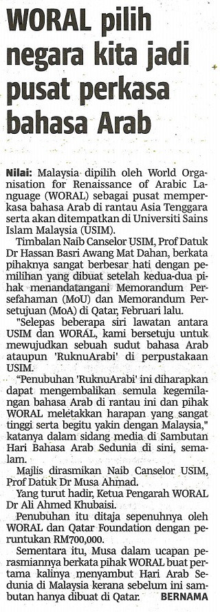 Woral Pilih Negara Kita Jadi Pusat Perkasa Bahasa Arab