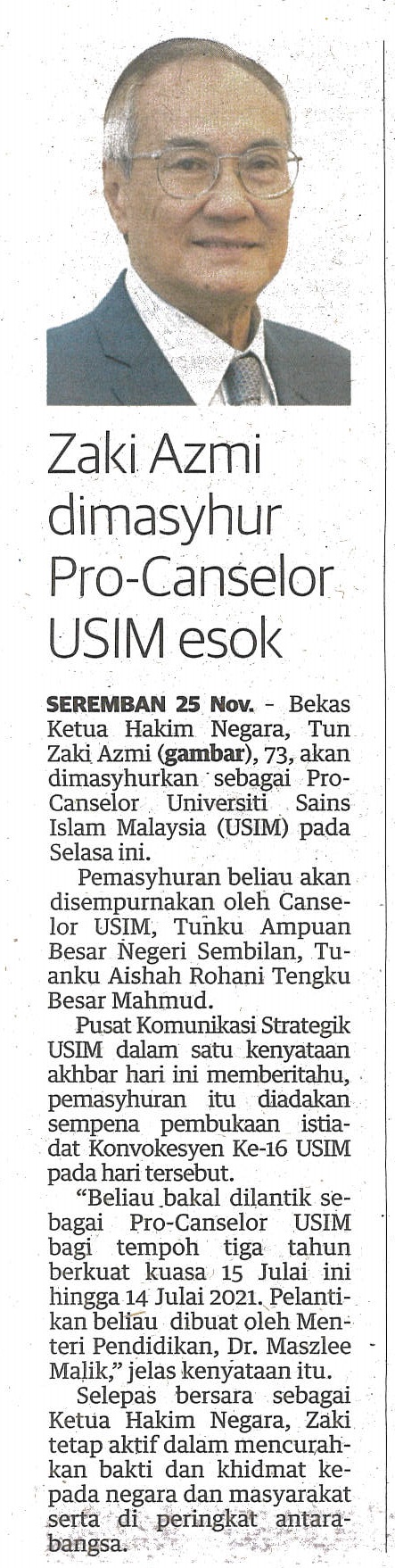 UTUSAN MALAYSIA 26 NOVEMBER 2018 MS 6 ZAKI AZMI DIMASYHUR PRO-CANSELOR USIM ESOK.jpg