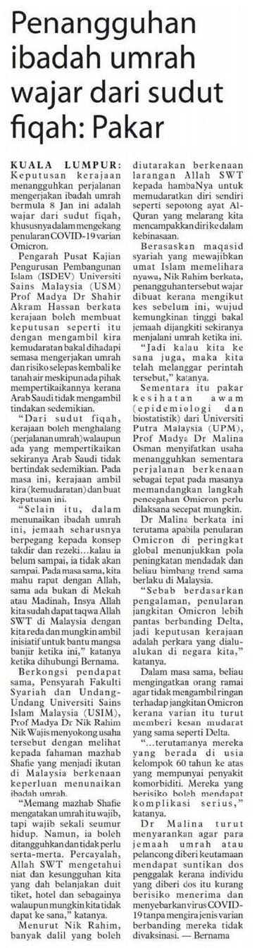 - UTUSAN BORNEO SARAWAK 6 JANUARI 2022 MS 4 PENGANGGUHAN IBADAH UMRAH WAJAR DARI SUDUT FIQAH.jpg