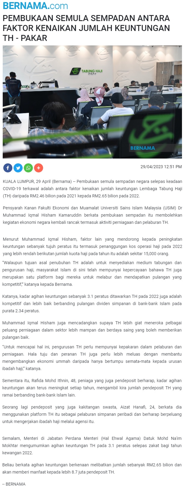 Pembukaan Semula Sempadan Antara Faktor Kenaikan Jumlah Keuntungan TH