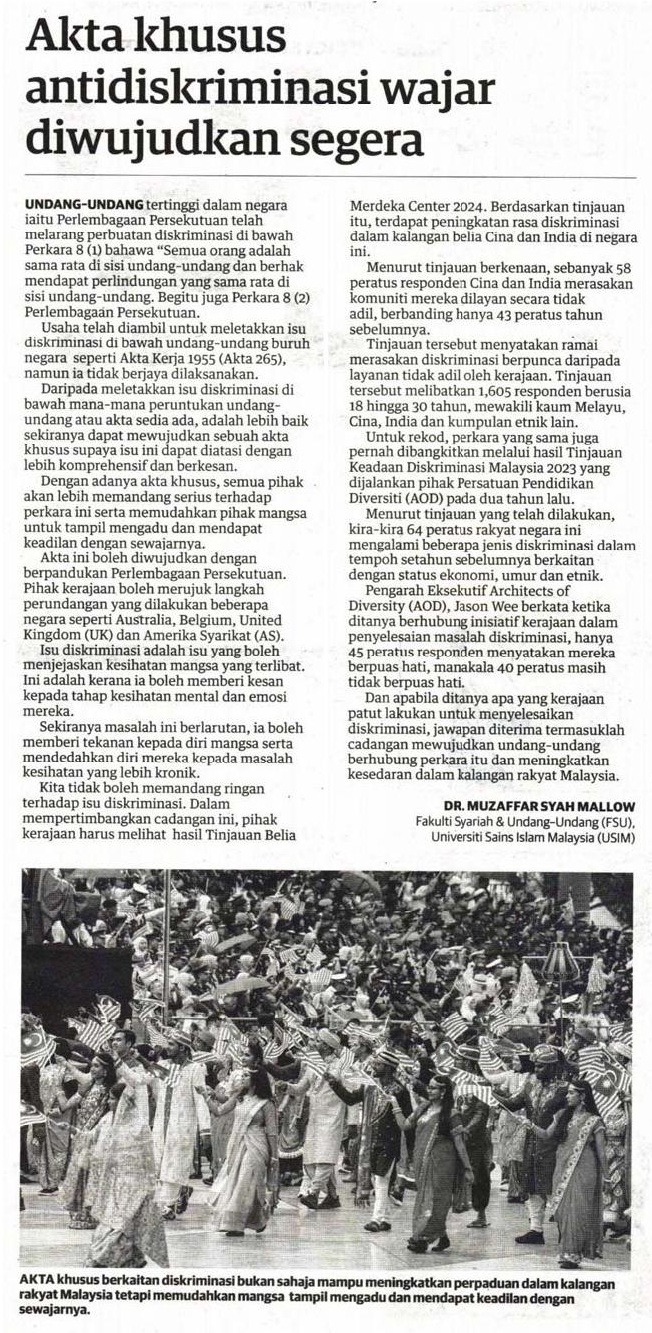 Akta khusus antidiskriminasi wajar diwujudkan segera
