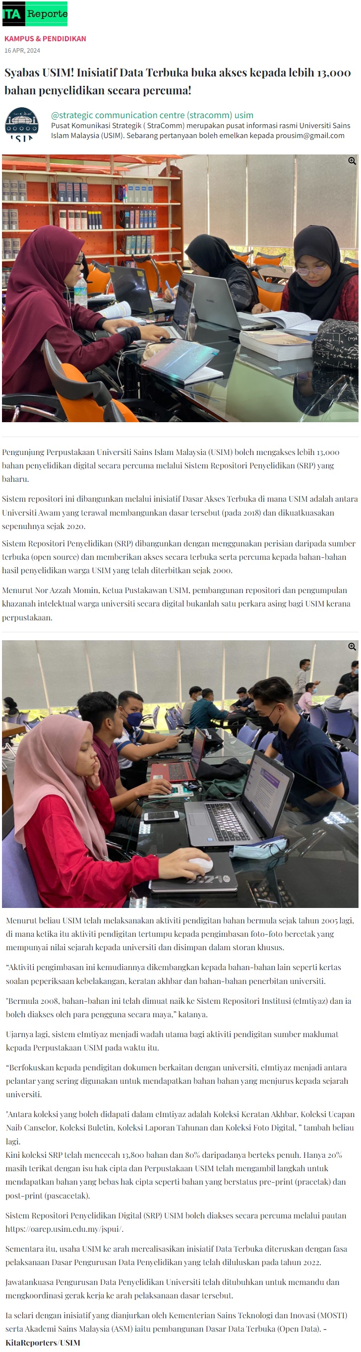 Syabas USIM! Inisiatif data terbuka buka akses kepada lebih 13000 bahan penyelidikan secara percuma