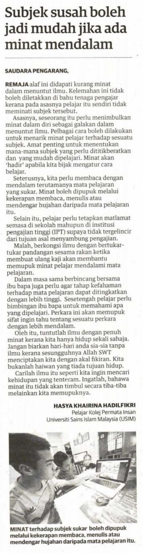 Subjek susah boleh jadi mudah jika ada minat mendalam