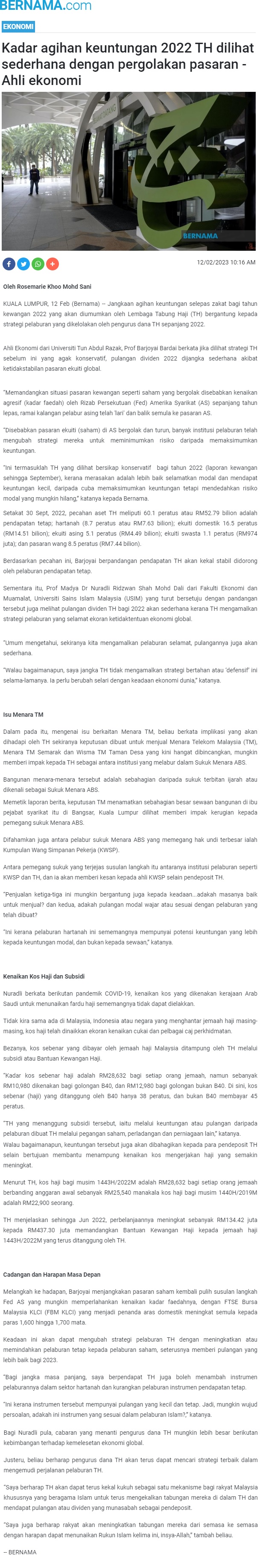 Kadar agihan keuntungan 2022 TH dilihat sederhana dengan pergolakan pasaran
