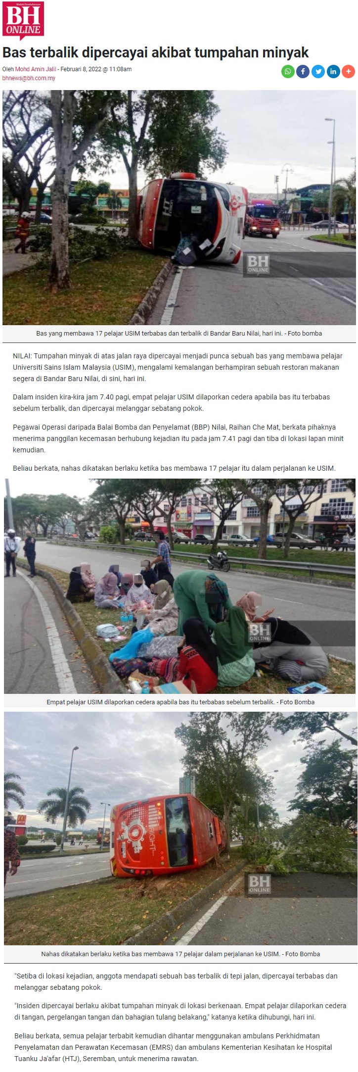 Bas Terbalik Dipercayai Akibat Tumpahan Minyak