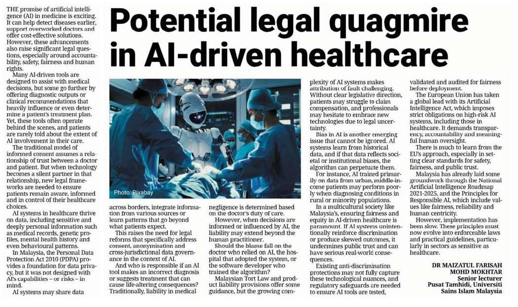 THE STAR 13 JUN 2025 MS 12 POTENTIAL LEGAL QUAGMIRE IN AI DRIVEN HEALTHCARE.jpg