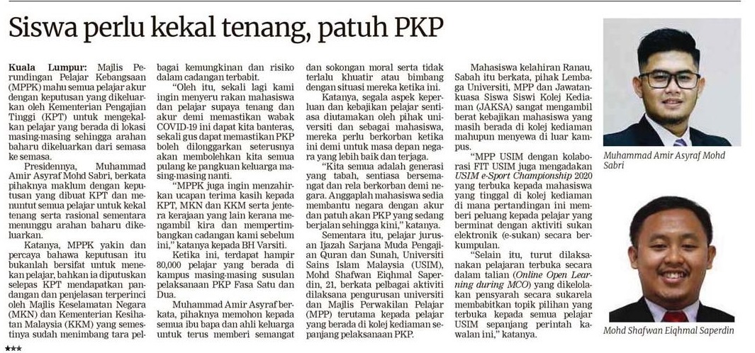 Siswa Perlu Kekal Tenang, Patuh PKP