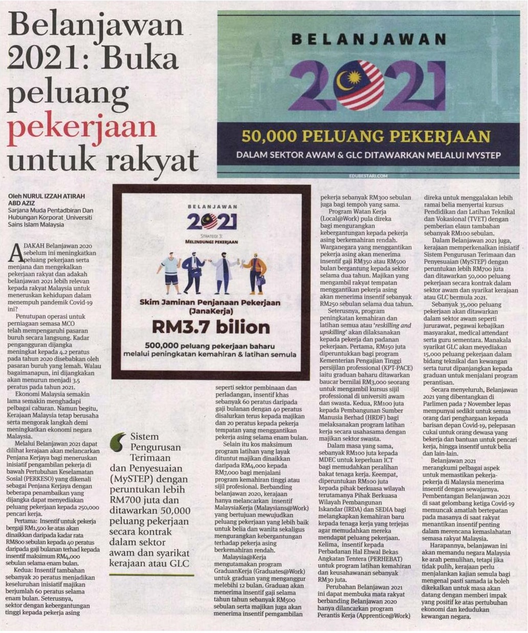 Belanjawan 2021 : Buka Peluang Pekerjaan Untuk Rakyat
