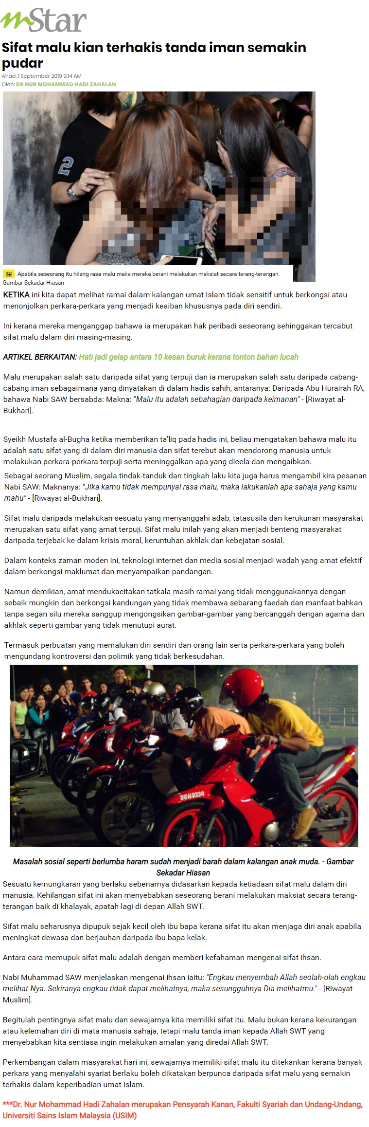 Sifat Malu Kian Terhakis Tanda Iman Semakin Pudar