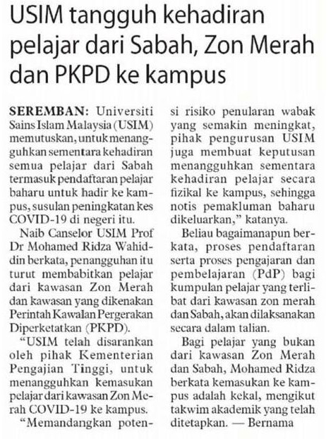 USIM Tangguh Kehadiran Pelajar Dari Sabah