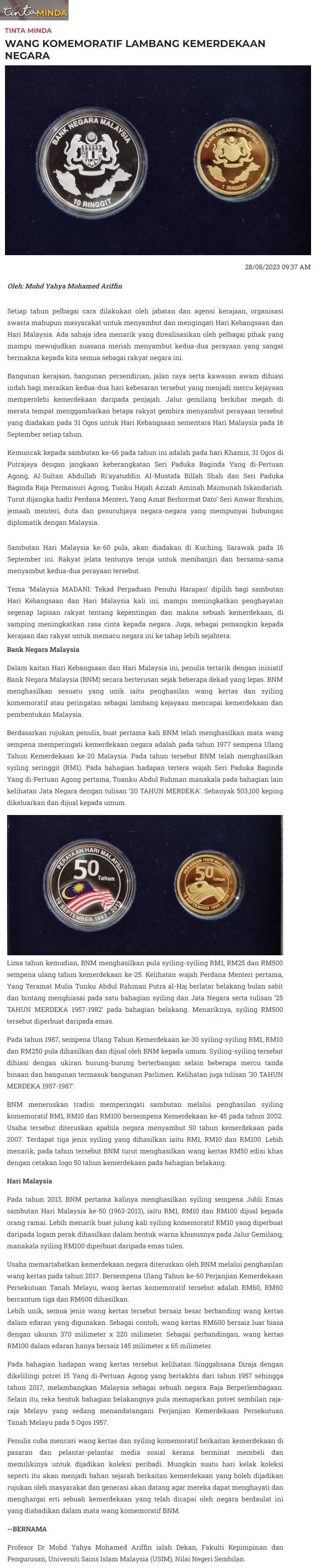Wang komemoratif lambang kemerdekaan negara