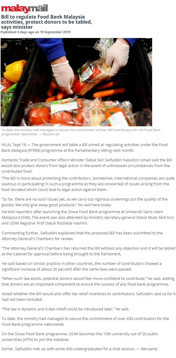 Bill To Regulate Foodbank Malaysia Activities