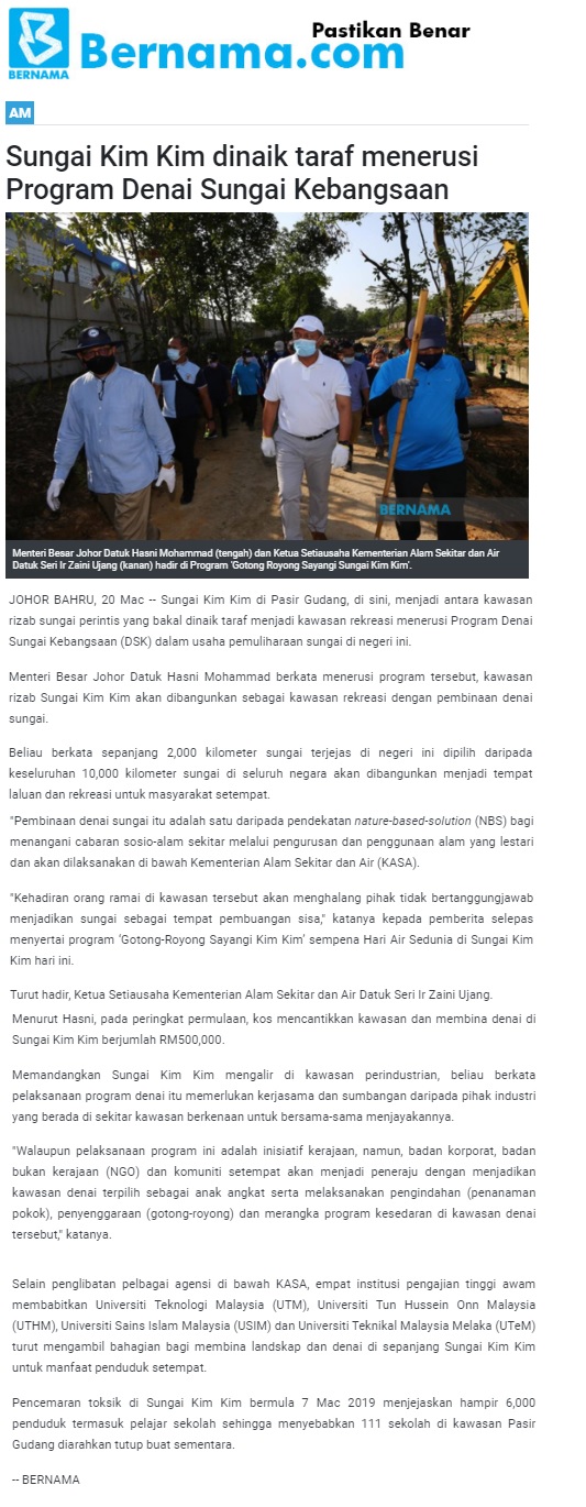 Sungai Kim Kim Naik Taraf Menerusi Program Denai Sungai Kebangsaan