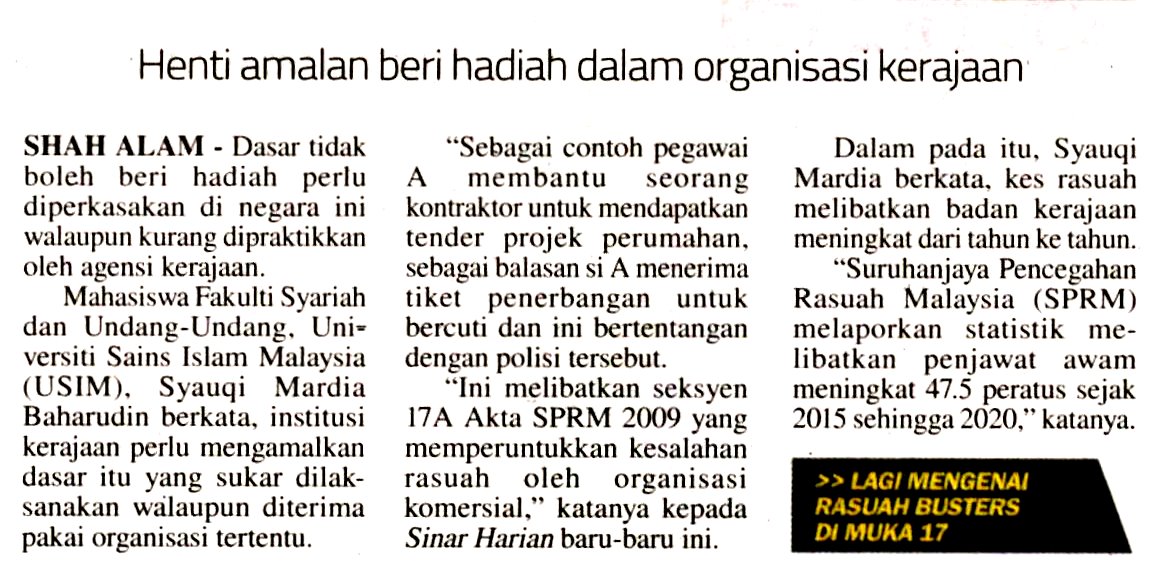 Henti Amalan Beri Hadiah Dalam Organisasi Kerajaan