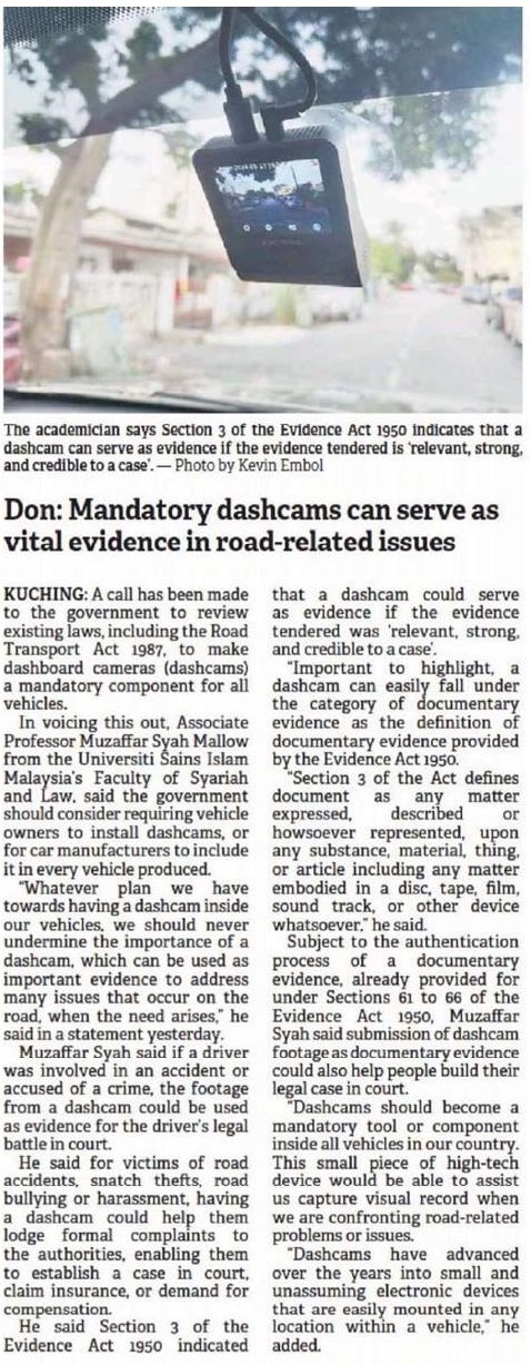 Don: Mandatory dashcams can serve as vital evidence in road-related issues