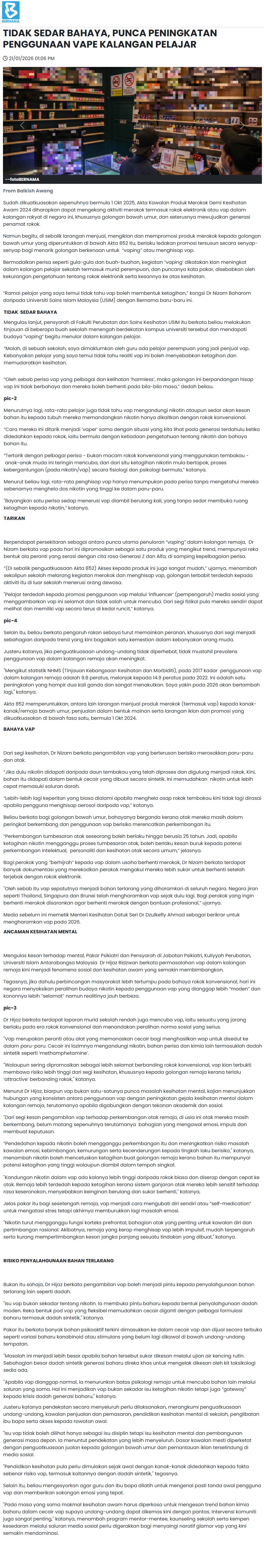 TIDAK SEDAR BAHAYA, PUNCA PENINGKATAN PENGGUNAAN VAPE KALANGAN PELAJAR