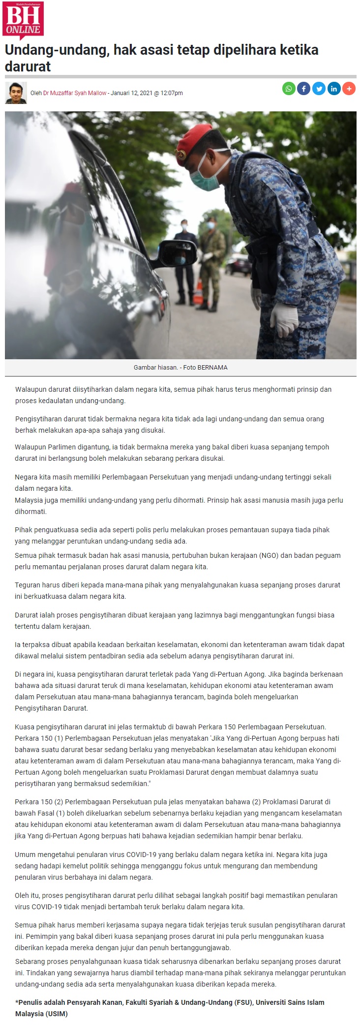 Undang-Undang Hak Asasi Tetap Dipelihara Ketika Darurat