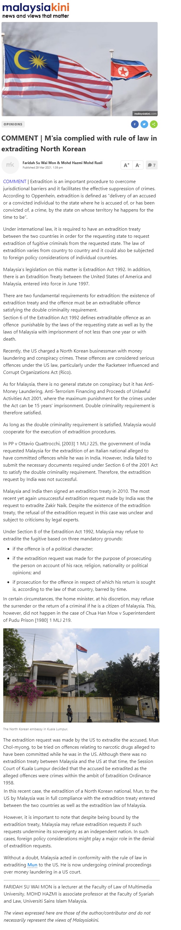 Malaysia Complied With Rule Of Law In Extrading North Korean