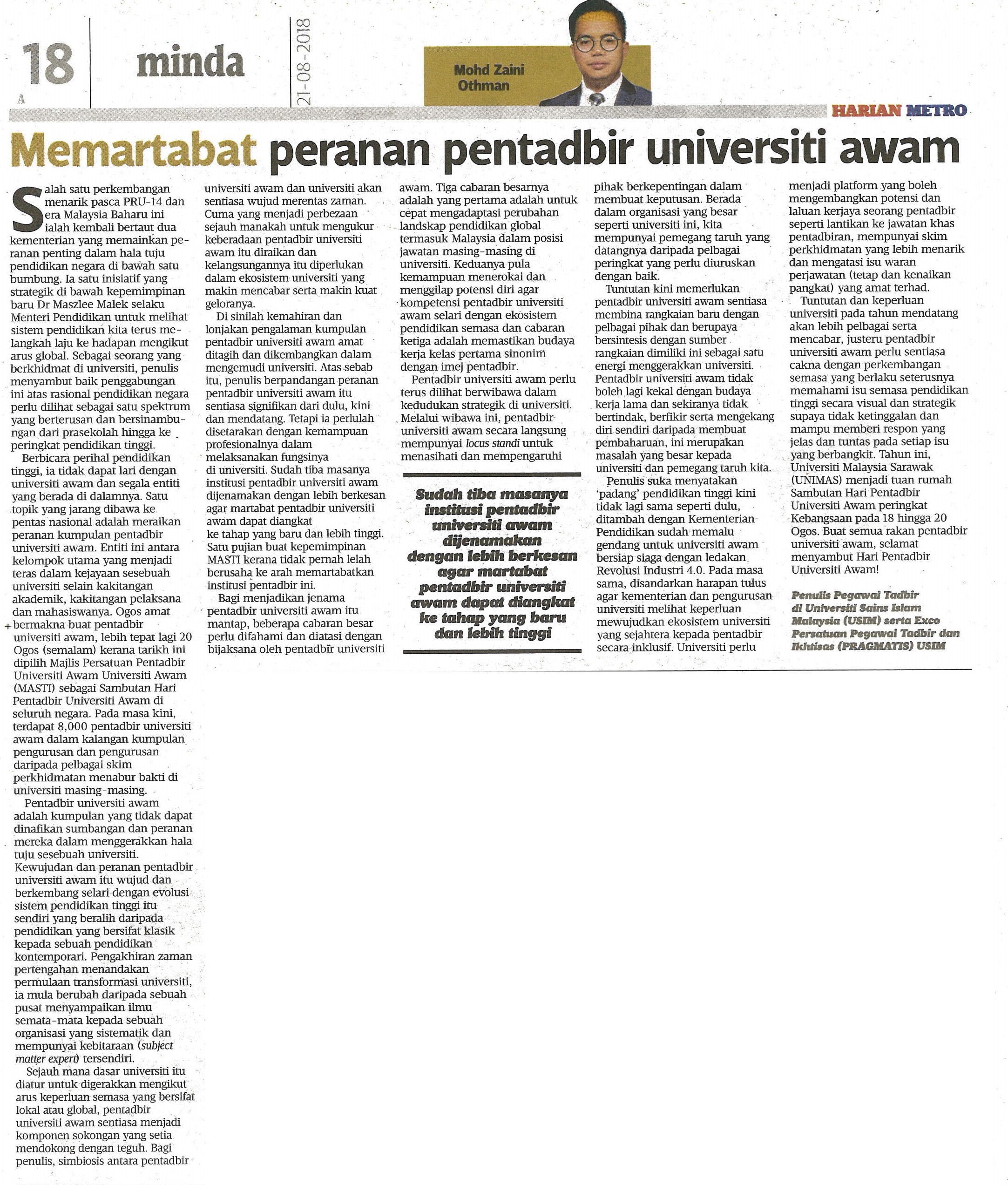 HARIAN METRO 21 OGOS 2018 MS 18 MEMARTABAT PERANAN PENTADBIR UNIVERSITI AWAM.jpg
