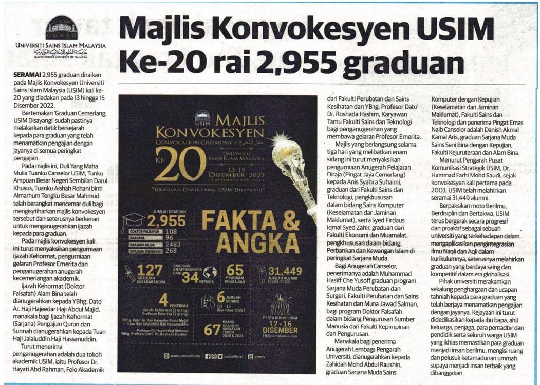 Majlis Konvokesyen USIM Ke-20 rai 2,955 graduan