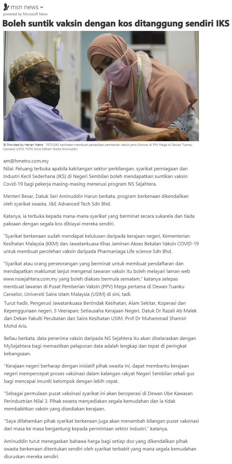 Boleh Suntik Vaksin Dengan Kos Ditanggung Sendiri IKS