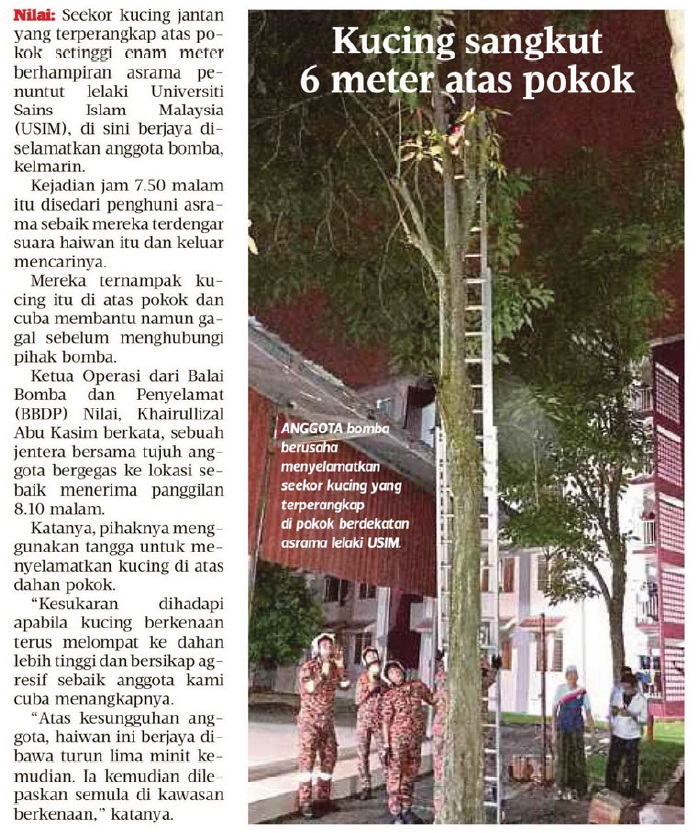 - HARIAN METRO - KUCING SANGKUT 6 METER ATAS POKOK, 9 DISEMBER 2017, MS 45.jpg