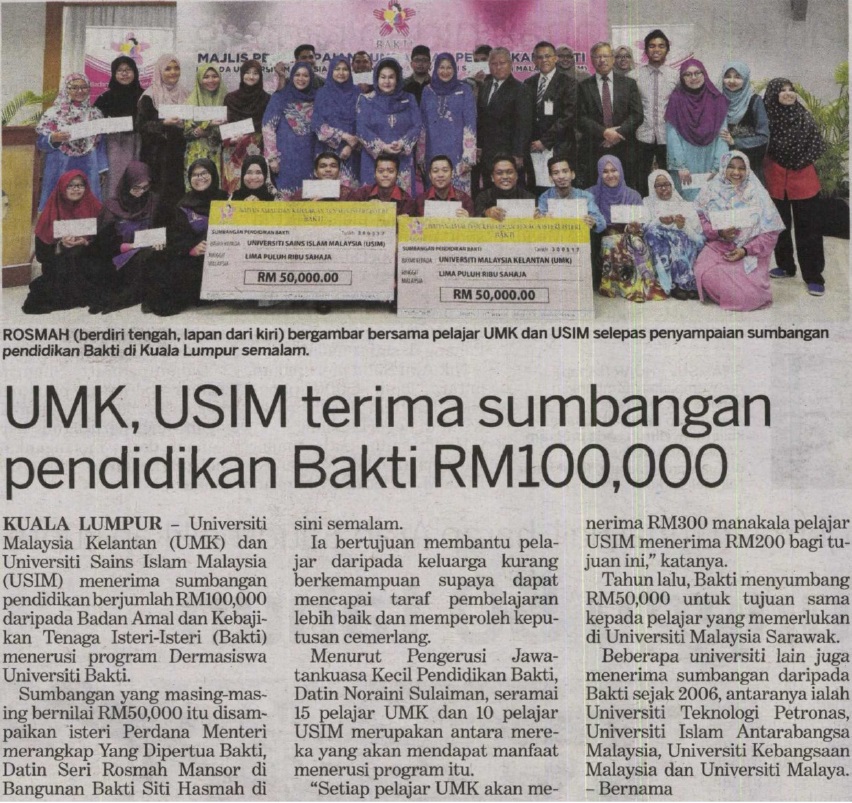 UMK, USIM Terima Sumbangan Pendidikan Bakti Rm100,000