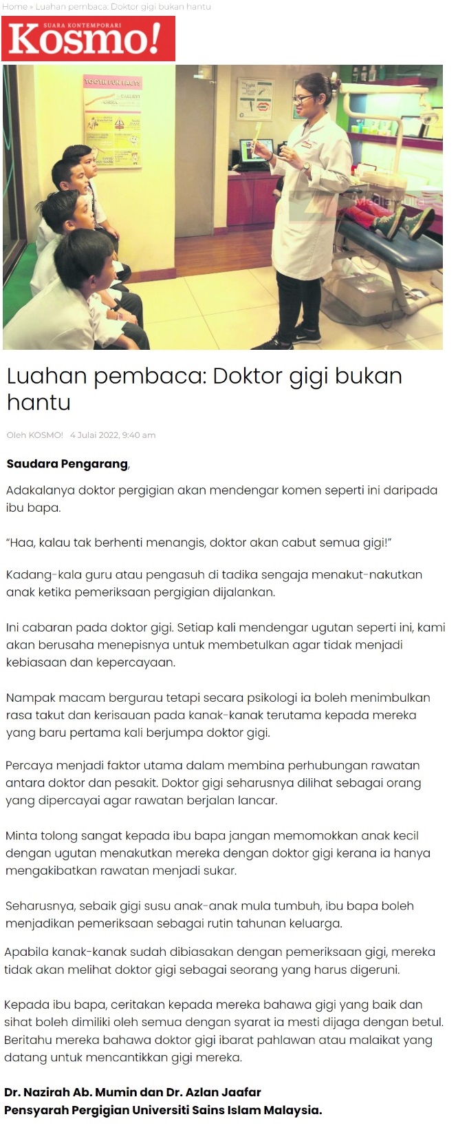 Henti Ugut Anak Dengan Mitos Doktor Gigi Menakutkan